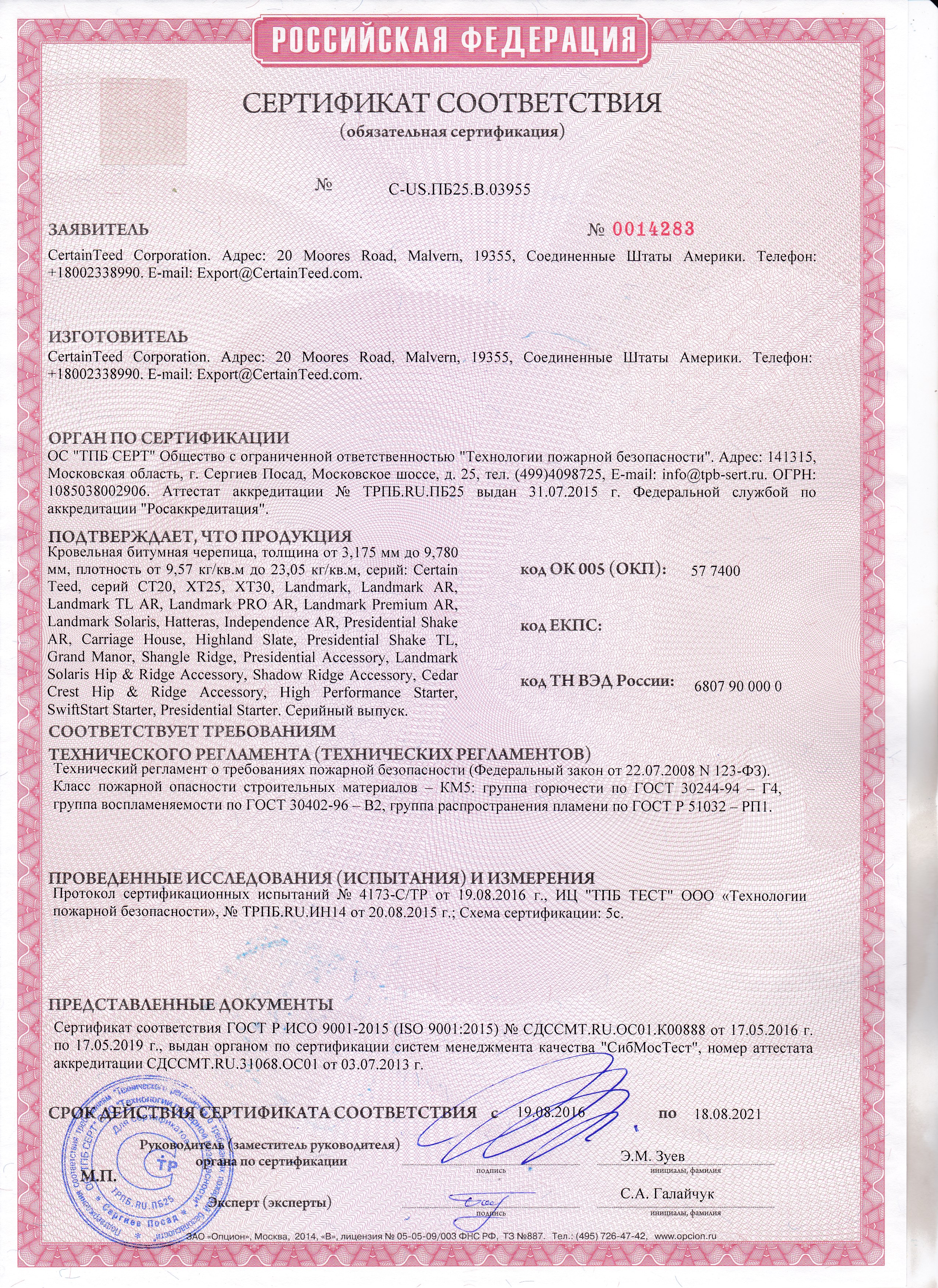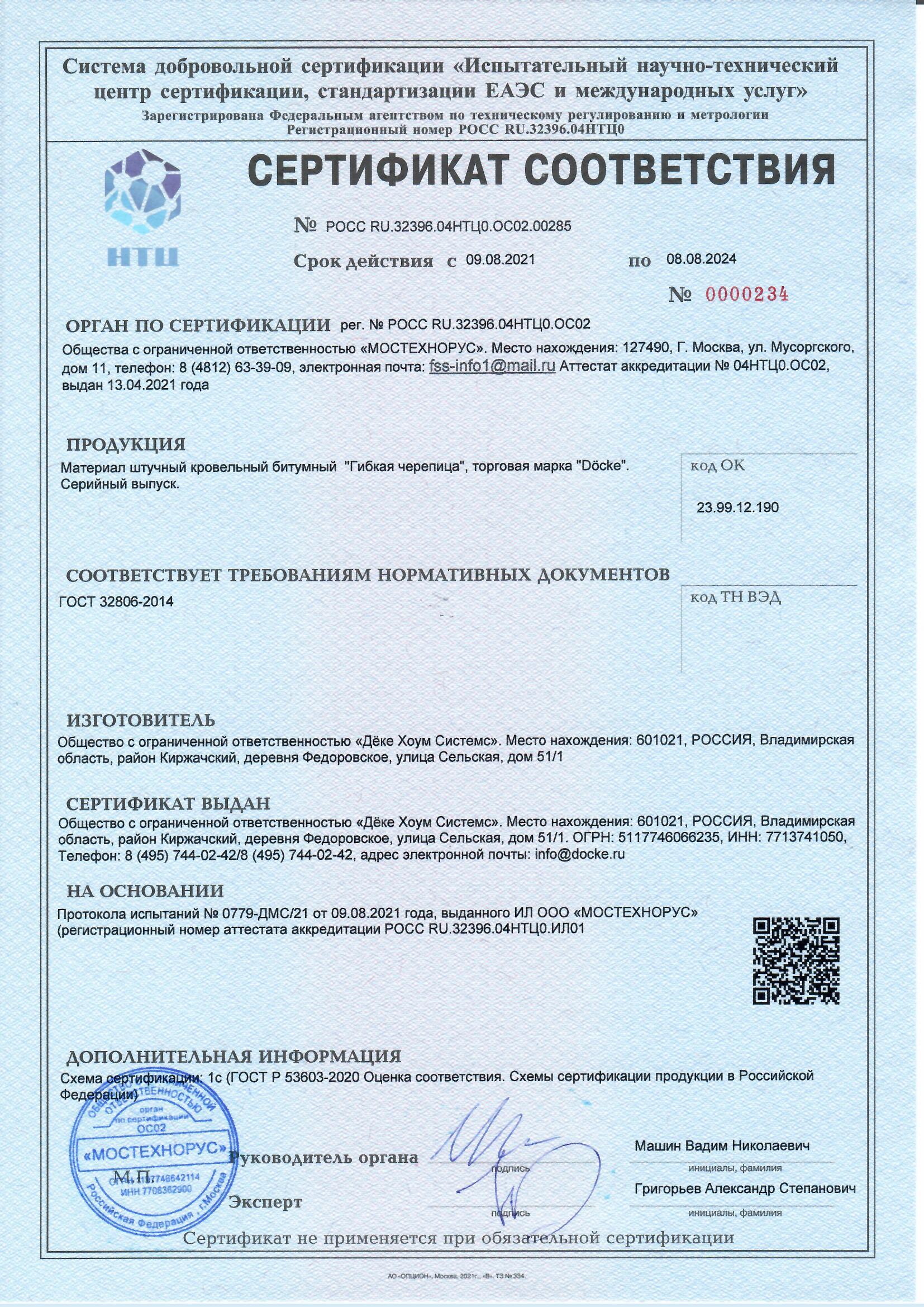 Сертификаты гибкой черепицы